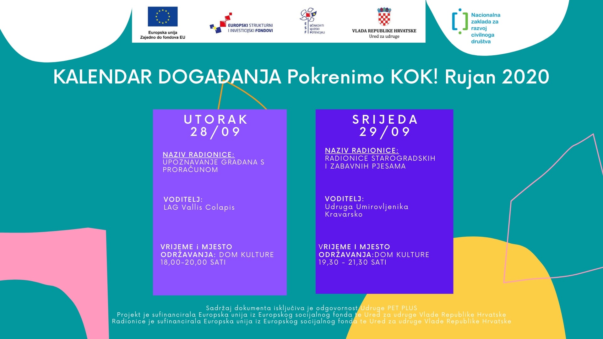 Radionice se provode u sklopu projekta Pokrenimo KOK! UP.04.2.1.07.0076. koji sufinancira Europska unija iz Europskog socijalnog fonda te Ured za udruge Vlade Republike Hrvatske.