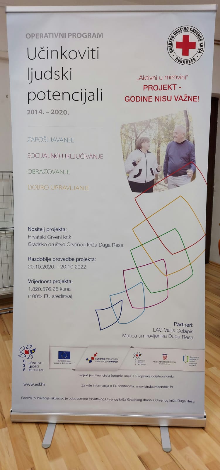 Projekt "Godine nisu važne!" provodi Hrvatski Crveni križ, Gradsko društvo Crvenog križa Duga Resa u partnerstvu s Maticom umirovljenika Duga Resa i LAG-om Vallis Colapis.