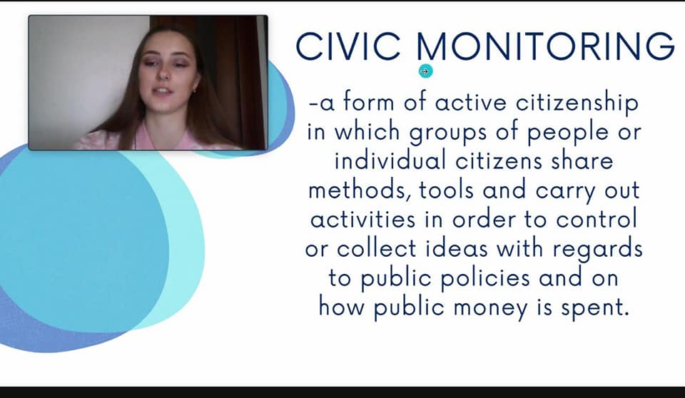 Cilj projekta je jačanje kapaciteta osoba koje rade s mladima u području aktivnog građanstva i sudjelovanja mladih kroz uvođenje alata Civic monitoringa. Civic monitoring vode građani i akteri civilnog društva. To je proces ispitivanja područja od javnog interesa te političkih i gospodarskih centara moći. Razlikujemo četiri tipa monitoringa:
