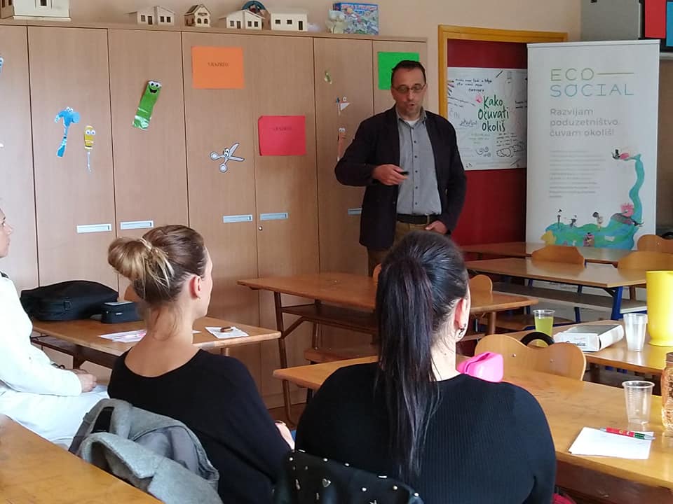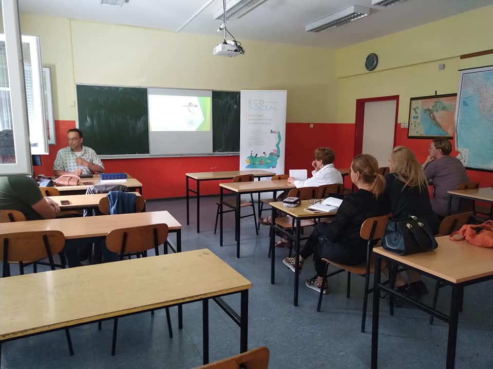U sklopu projekta „ECO-SOCIAL: Razvijam poduzetništvo, čuvam okoliš!“ održan je prvi set edukacija za učitelje. Edukacija „Temeljne postavke održivog razvoja u međunarodnim dokumentima i deklaracijama“ provedena je za učitelje 6 osnovnih i srednjih škola s područja Karlovačke županije. Riječ je o prvoj od 3 edukacije koje će biti provedene za učitelje u sklopu aktivnosti projekta. Sljedeće dvije edukacije „Uloga volonterstva i zadružne ekonomije u održivom razvoju lokalne zajedniceˇ te „Osnovni elementi oporabe tekstila u RH“ održat će se sljedeće školsko polugodište.