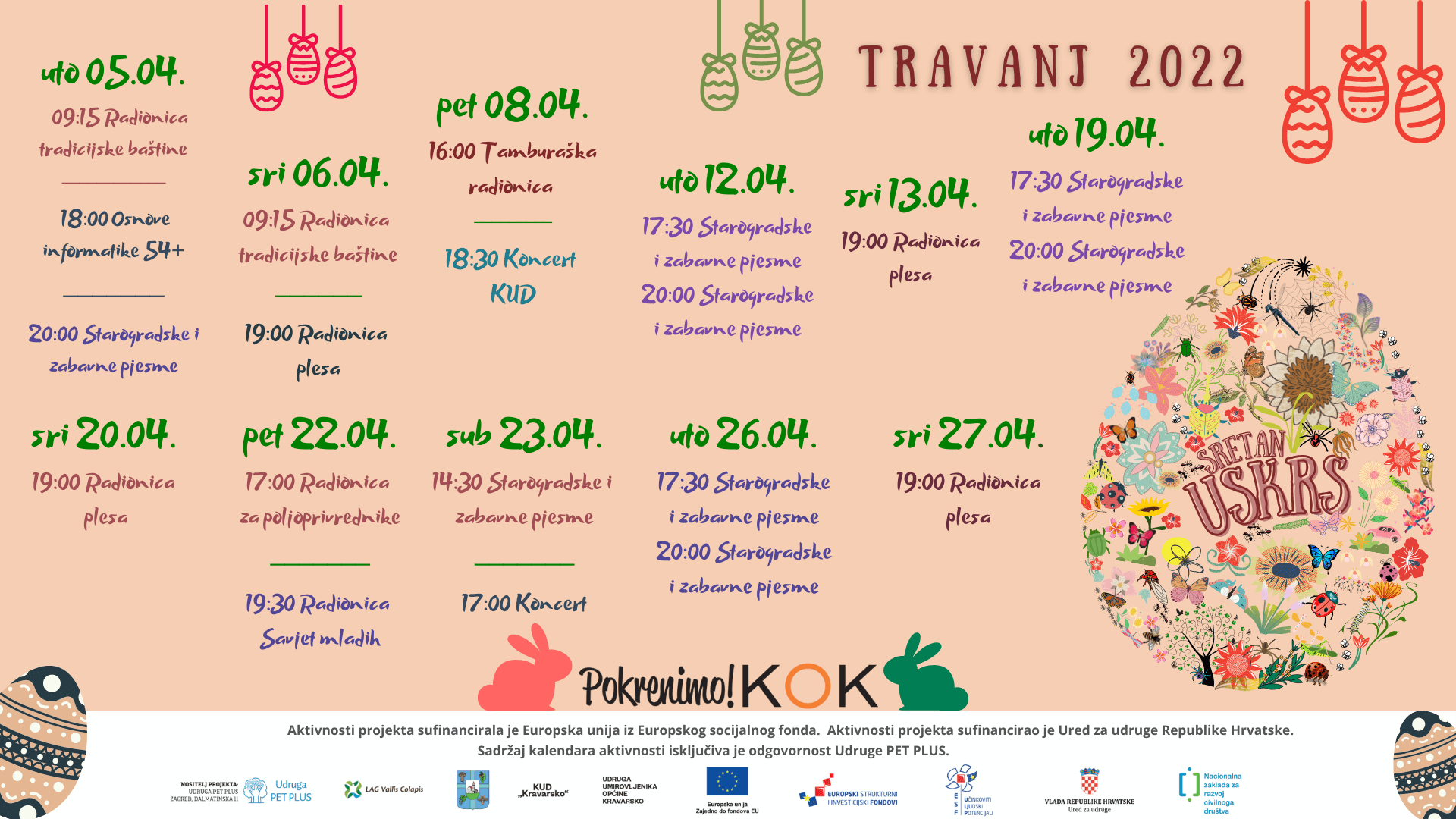 Kravarsko: ESF projekt Pokrenimo KOK (kulturu općine Kravarsko)! - kalendara događanja za travanj 2022.